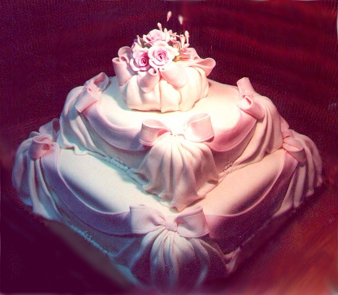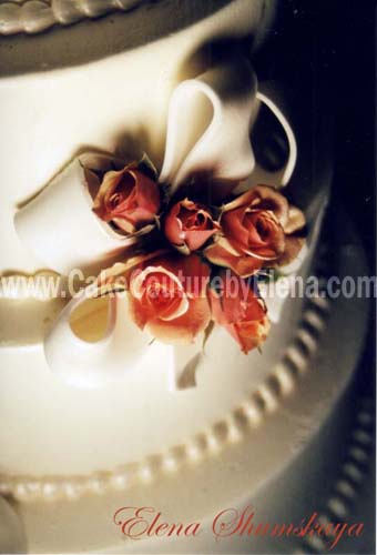 rose bow wedding cak..>